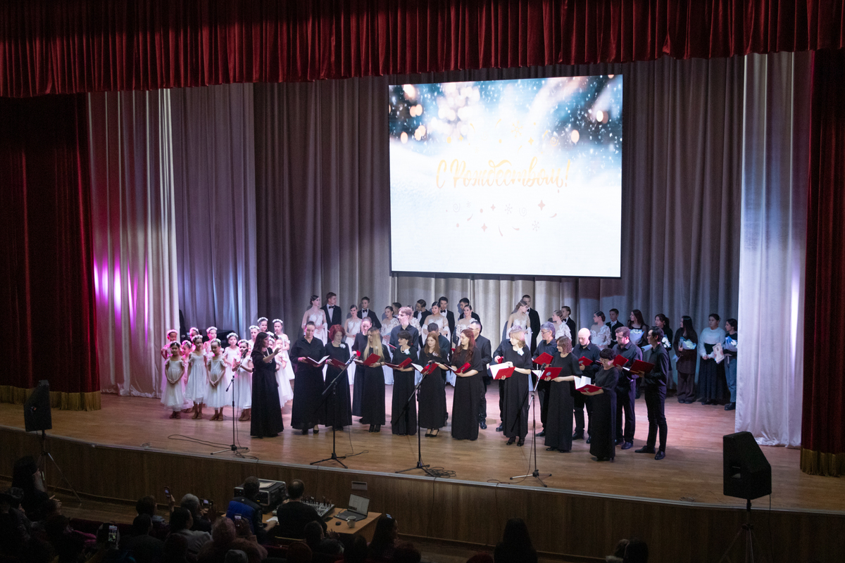 17 января, в Кыргызско-Российском Славянском университете состоялся традиционный Рождественский концерт, организованный в сотрудничестве с Бишкекской и Кыргызстанской епархией. Это ежегодное событие, которое уже заняло свое место в культурной и духовной жизни столицы, вновь собрало студентов, горожан и гостей для совместного погружения в атмосферу творчества и духовности.