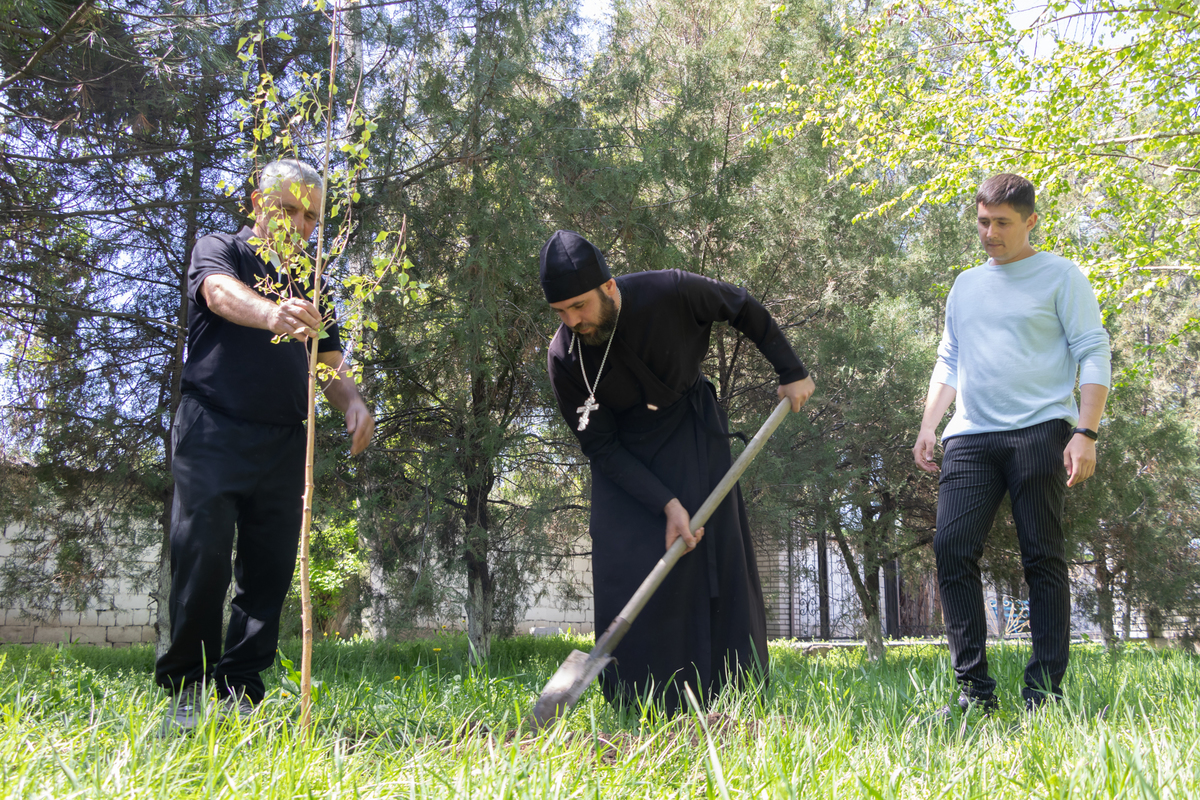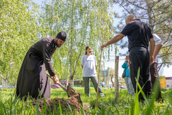 «Мы сажали деревья и у храма, и на футбольном поле. А возле памятника воинам посадили кусты. Хотелось, чтобы это место стало ещё красивее и чище, чтобы здесь дышалось свободнее – и душой, и телом», – поделился руководитель епархиального молодежного движения иерей Илия Бойко.