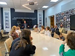 Затем группа направилась в музей блокады, где состоялась познавательная экскурсия. Её провёл председатель Кыргызского общества блокадников Марат Асанбекович Кутанов. Он не только рассказал о судьбах блокадников, но и поделился личной историей, поскольку его мать – Анна Алексеевна Кутанова – в течение более 20 лет возглавляла общество блокадников в Кыргызстане.