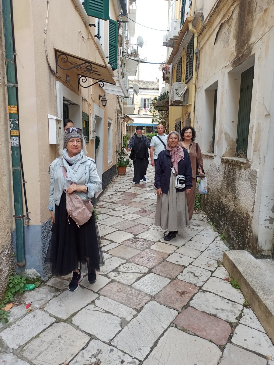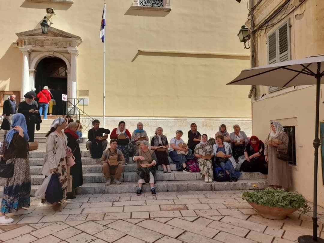 На следующий день женская группа исследовала лавочки городка Уранополи и с нетерпением ждала возвращения мужчин с Афона. После теплой встречи группа отправилась в длительный переезд на остров Корфу, наслаждаясь рассказами гида и молитвами в автобусе. В Корфу паломники посетили храм святителя Спиридона Тримифунтского, где покоятся его нетленные мощи, и приняли участие в Литургии, возглавляемой митрополитом Нектарием.