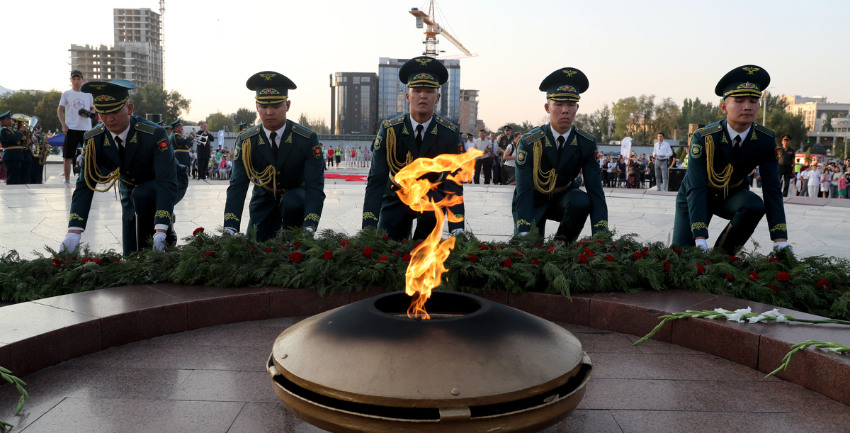 Память о Великой Отечественной войне живет в каждом уголке Кыргызстана. Из республики на фронт ушли более 360 тысяч человек, из которых 130 тысяч погибли. Более 150 тысяч уроженцев Киргизской ССР были награждены боевыми наградами, а 74 бойца стали Героями Советского Союза. Кыргызстан также принимал на своей территории более 30 эвакуированных заводов и более 16 тысяч человек из блокадного Ленинграда.