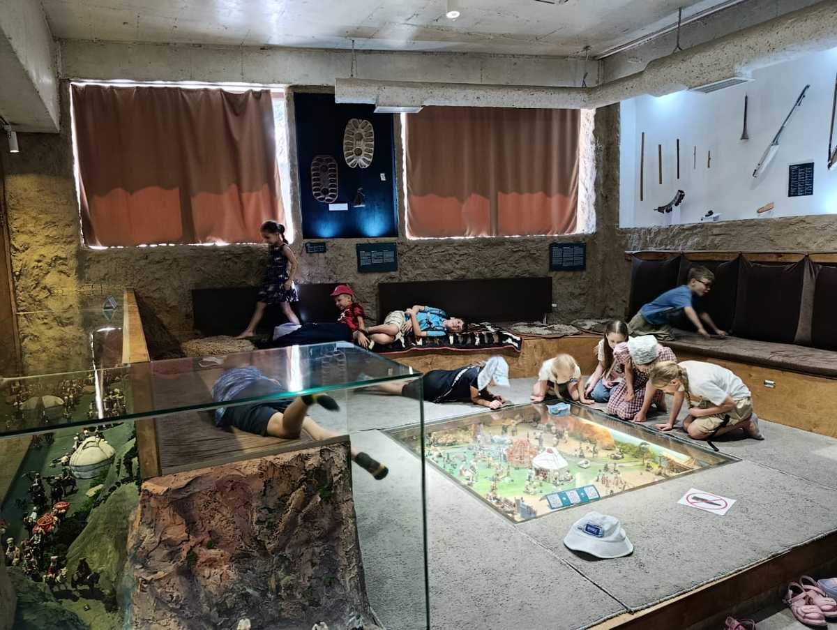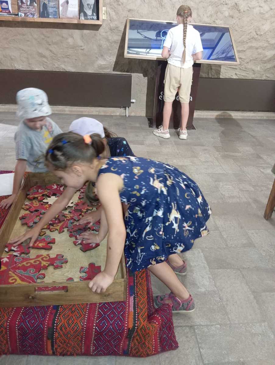Экскурсия в Государственный Исторический музей, который многие посетили впервые, продолжалась в течение двух часов, и экскурсовод Алмаз очень интересно и терпеливо ознакомил ребят с историей Кыргызстана, подробно рассказывая о каждом экспонате. Экскурсия в Этно-комплекс «Супара» и посещение музея, дала возможность ознакомится с бытом кыргызов. Дети с удовольствием играли в кыргызские национальные игры, собирали пазлы, складывая национальные ковры, рассматривали экспозиции и макеты музея, готовили толкан. Ребята с удовольствием провели время на детской площадке Этно-комплекса, играли в подвижные игры, фотографировались.