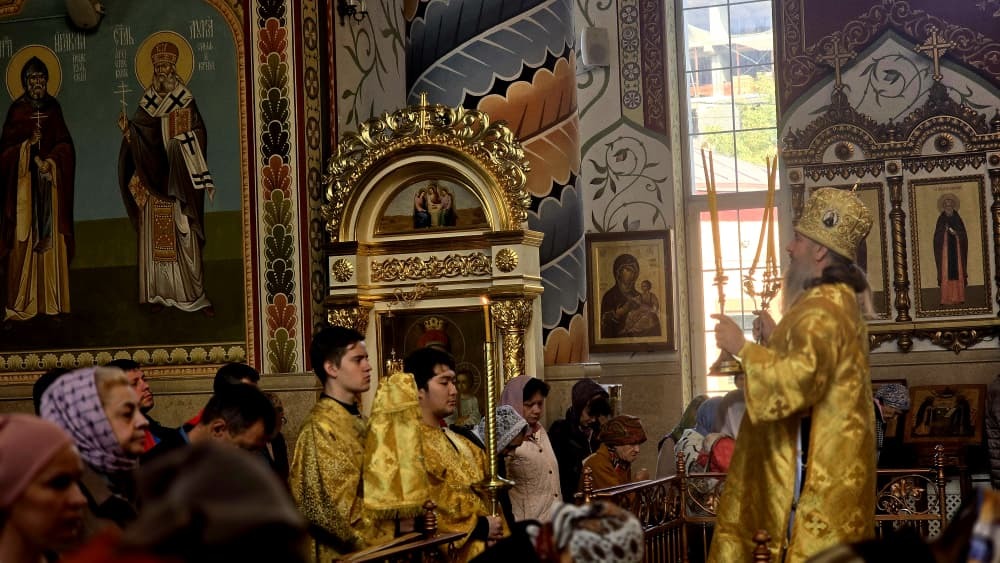 20 октября, день памяти апостолы Фомы, епископ Бишкекский и Кыргызстанский Савватий возглавил Божественную литургию в кафедральном соборе Бишкека.