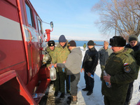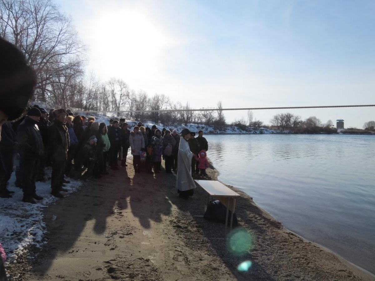После того, как иерей Евгений провел богослужение и освятил воду, первыми окунулись представители роты охраны, подав хороший пример остальным. Глядя на их решительные действия, создавалось впечатление, что купание в ледяной воде для них обычное дело.