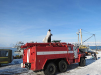 В отличие от купания на авиабазе, на территории базы ВМФ вместо палаток использовались автобусы для переодевания, а для освящения крещенской воды вместо баков использовалась пожарная машина.