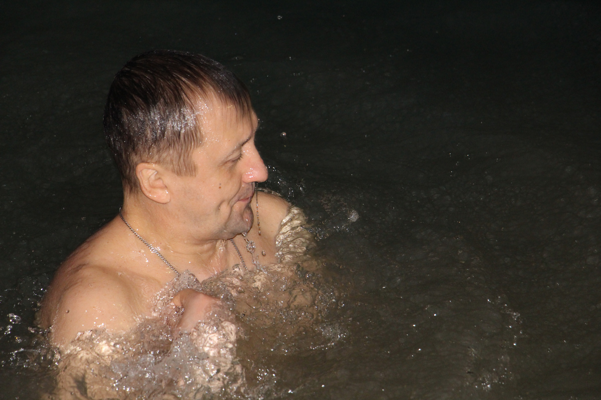 В этот день вместе с авиаторами в святую воду окунались и военнослужащие, прибывшие с проверкой в составе военной инспекции Министерства обороны РФ, а также командующий 2 К ВВС и ПВО генерал-лейтенант Виктор Севостьянов и начальник отдела кадров 2 К ВВС и ПВО полковник Андрей Петроченко. И делали они это, кстати, тоже очень уверенно. Видно было, что и многие другие в крещенских купаниях участвовали далеко не первый раз. Сам иерей Евгений, купальщик со стажем, в этом пруду окунулся и укрепился духом в пятый раз. А для кого-то такое значимое событие в жизни произошло впервые.