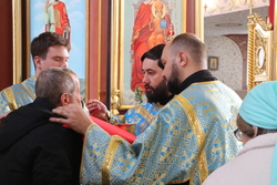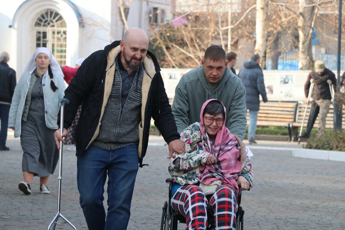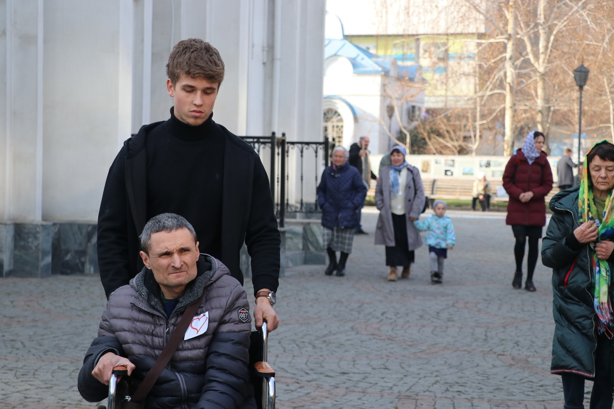В этот день особые гости наполнили храм – на праздничную литургию были доставлены пожилые люди и люди с ограниченными возможностями здоровья. Работники и добровольцы социального отдела епархии помогли им добраться до собора, чтобы каждый смог причаститься Святых Христовых Таин.