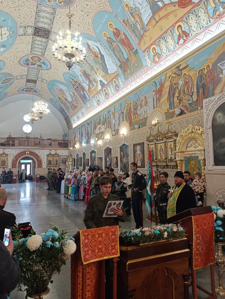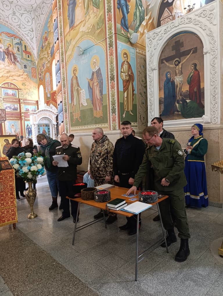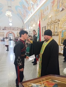 Перед началом работы секции в Свято-Воскресенском кафедральном соборе было совершено торжественное верстание в казаки, казачки и кадеты. Верстание – это обряд принятия вступающего в казачье сообщество с принесением присяги. Также в присутствии казачества был совершен чин освящения войсковой хоругви.