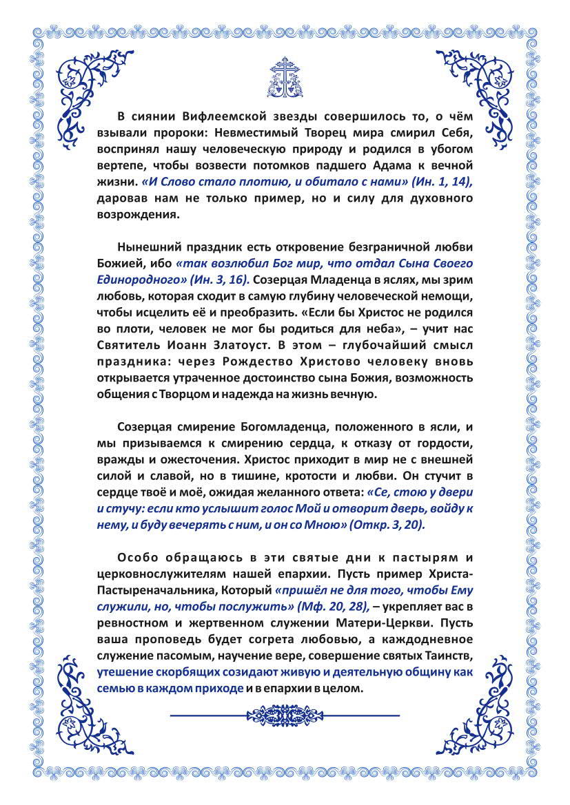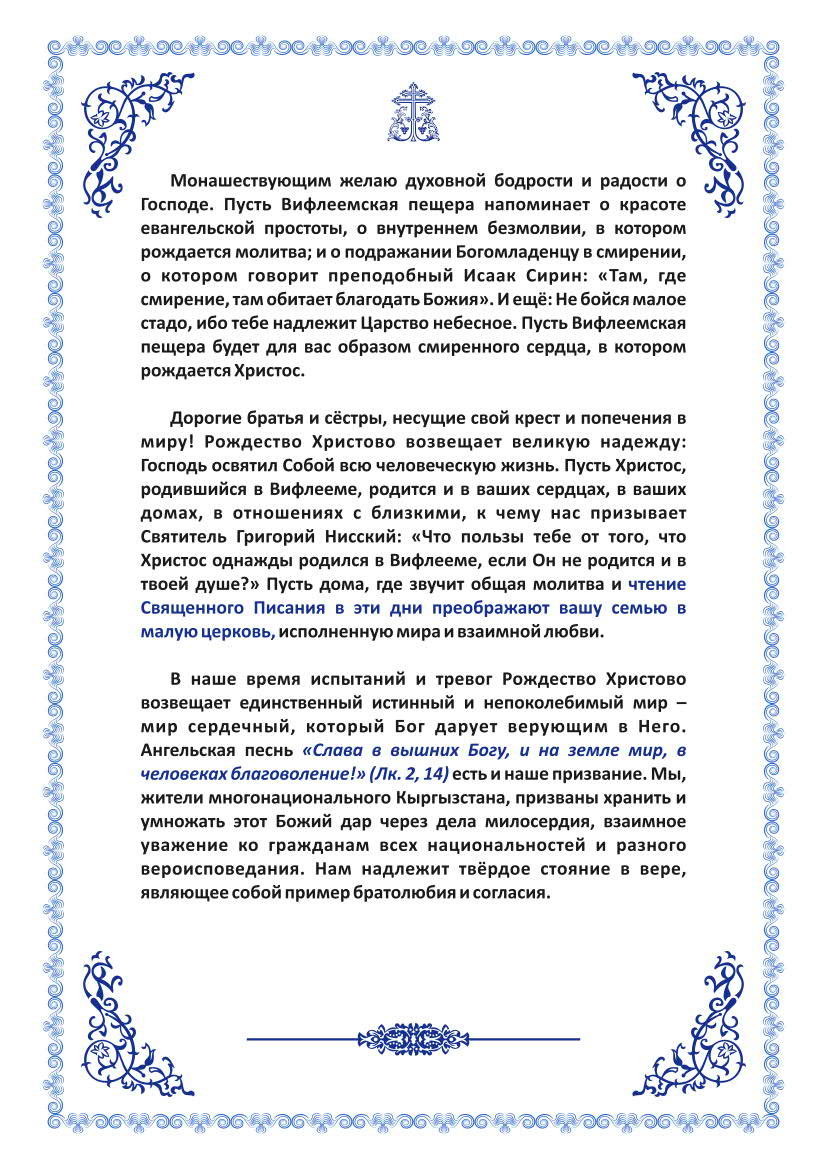 Рождественское Послание епископа Бишкекского и Кыргызстанского Савватия