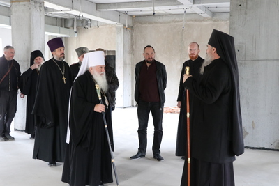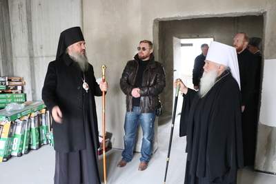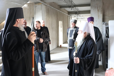 На сегодняшний день здание школы имеет завершенный конструктивный облик: возведены основные объемы, выполнена кровля, установлены оконные блоки, сформированы фасады. В ходе осмотра митрополиту были показаны будущие учебные классы, коридоры и вспомогательные помещения.