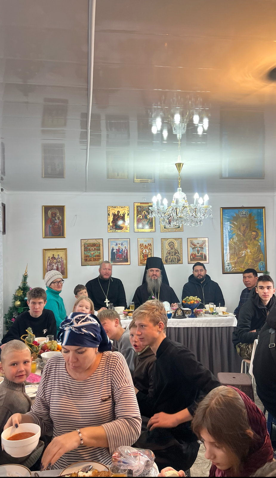 После литургии владыка, духовенство и дети посетили Иверский женский монастырь, расположенный неподалеку от храма. Общение продолжилось за общей трапезой в теплой, по-семейному радостной атмосфере Рождества Христова.