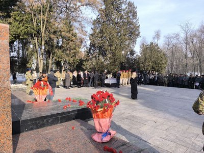 Мероприятие прошло у Вечного огня и было организовано Русским домом в Оше совместно с мэрией города Ош.