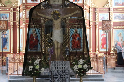 Пассия была совершена в середине храма перед Распятием, которое выставляется вместо аналоя перед великой вечерней.