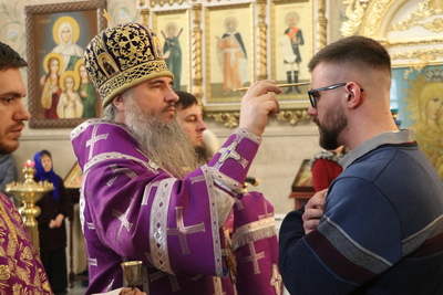 После поклонения Кресту епископ Савватий совершил помазание верующих освященным елеем.