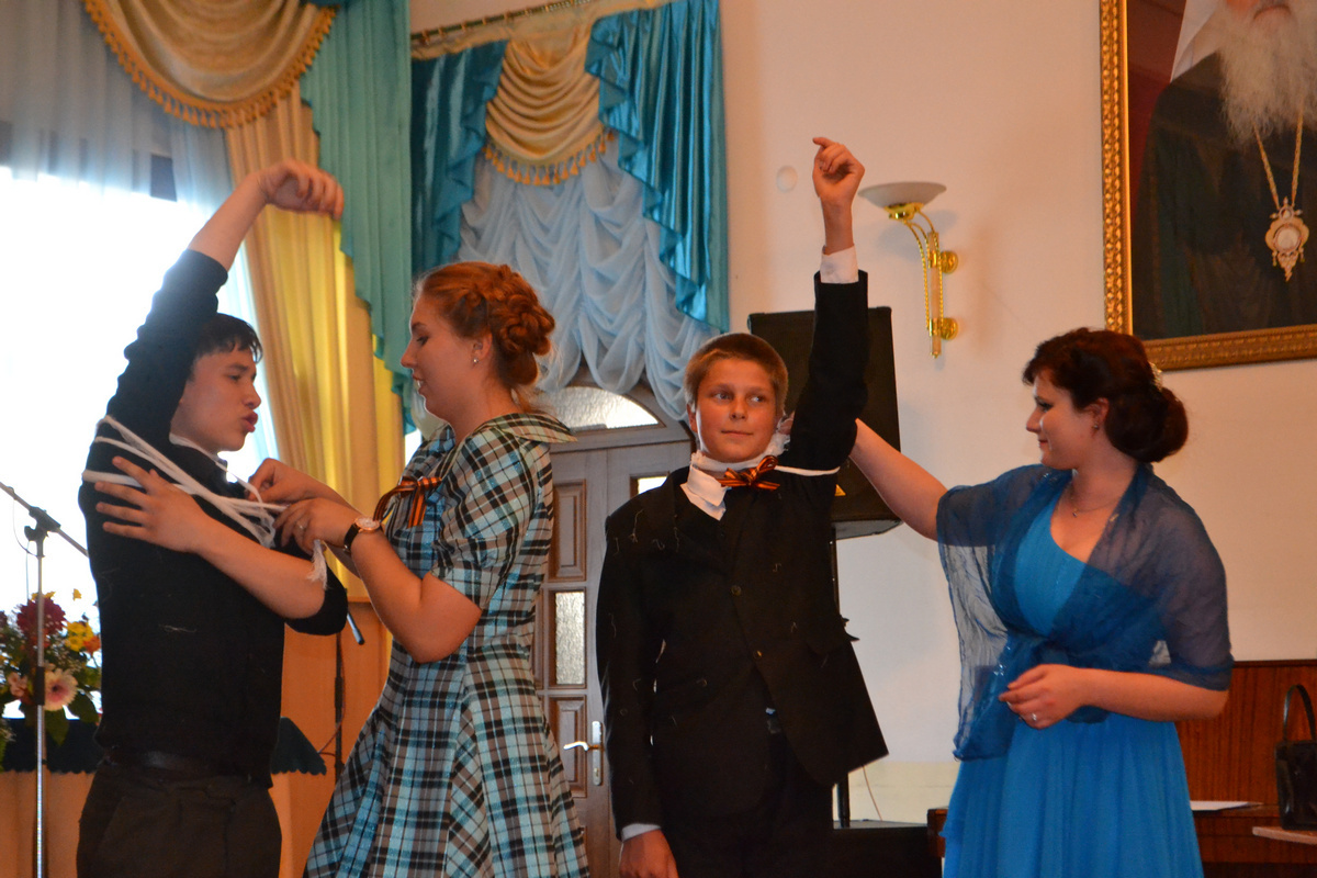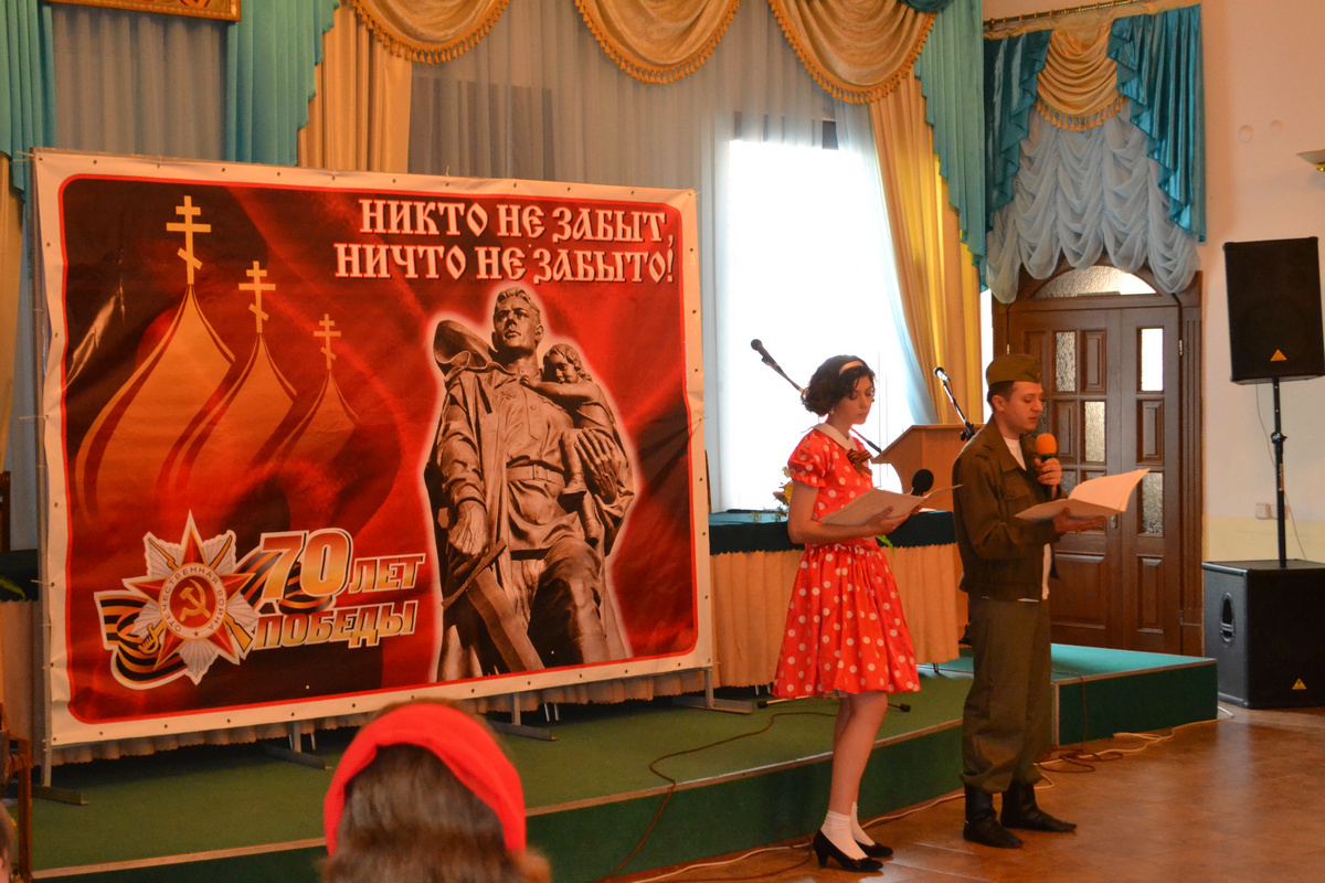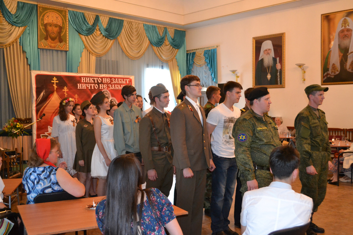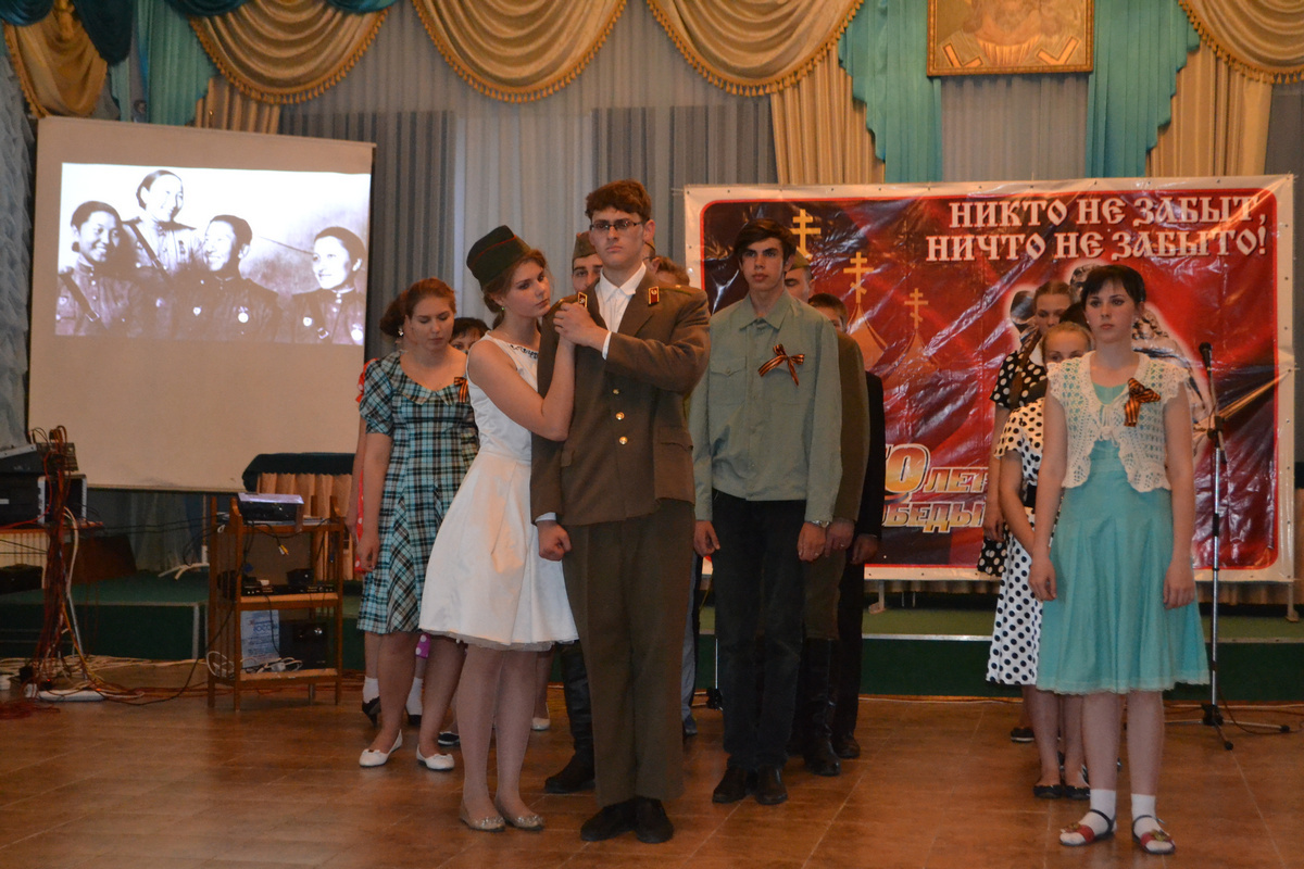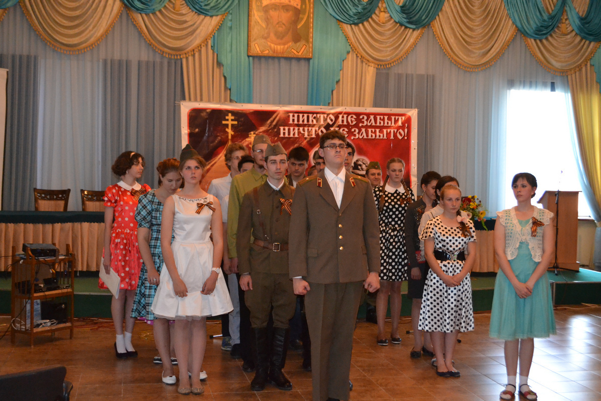 Участники православно-молодёжного клуба «Грани» под руководством Татьяны Мухиной подготовили сценарий литературно-поэтического, музыкально-театрализованного вечера, посвящённого 70-летию Победы в Великой Отечественной Войне и роли Русской Православной Церкви в период Великой Отечественной Войны.