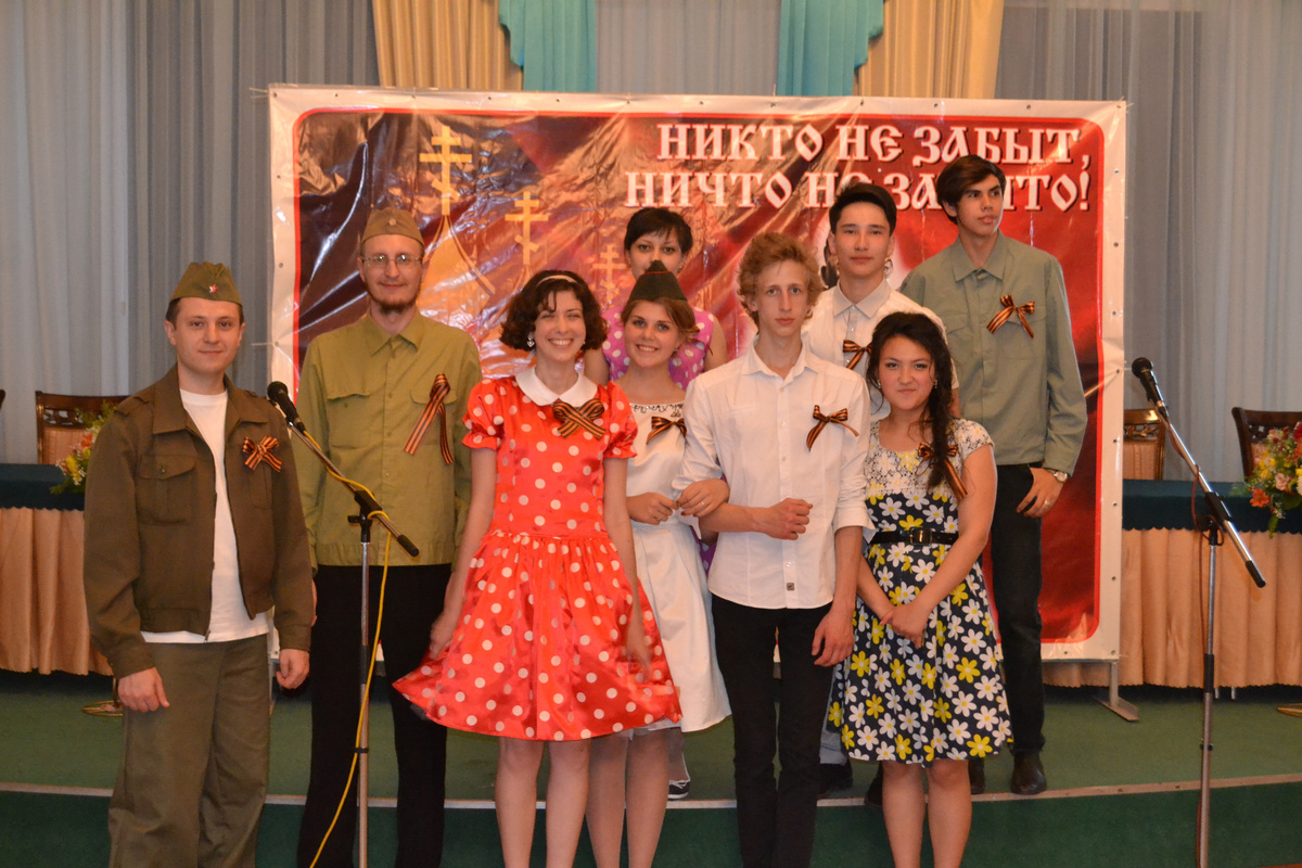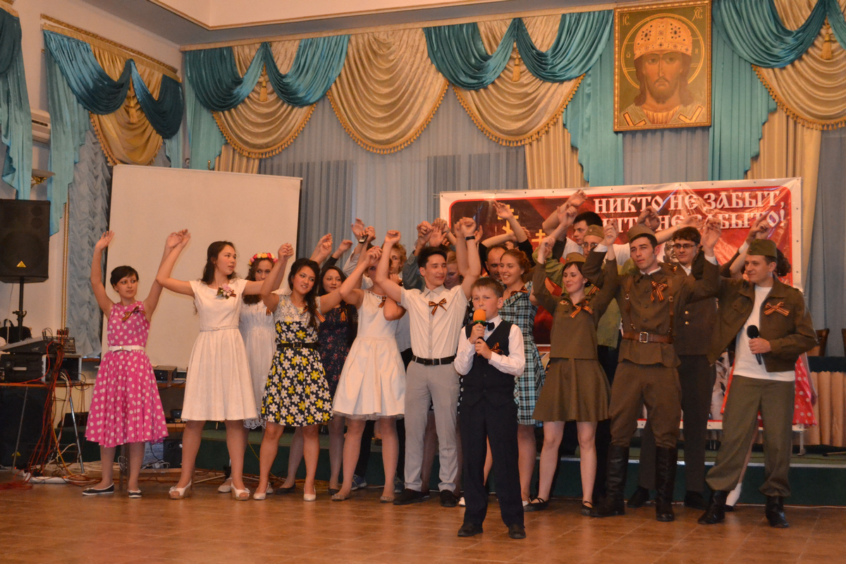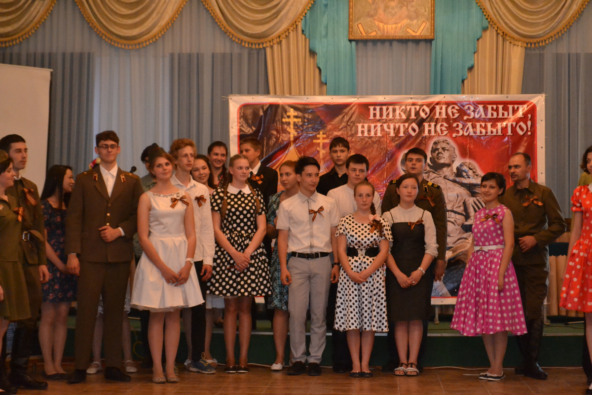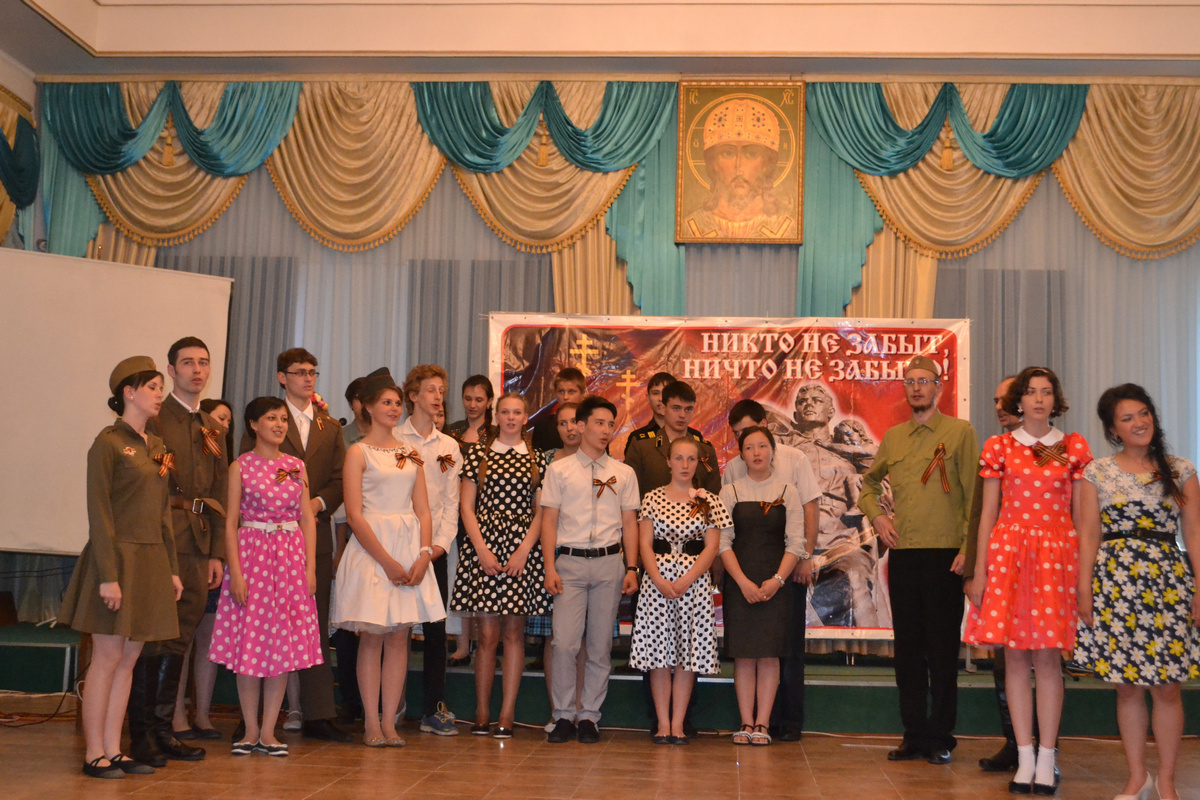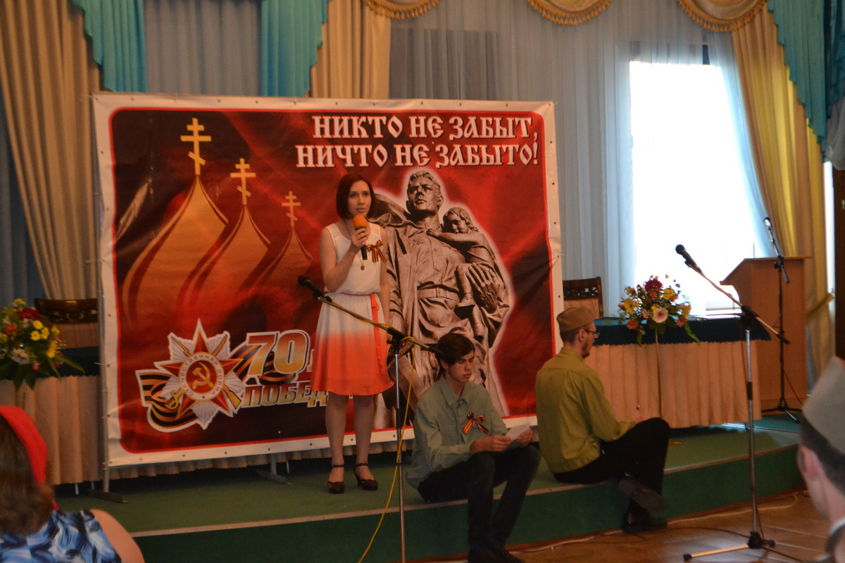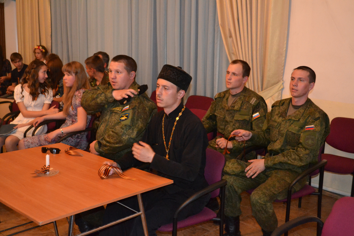 Участники православно-молодёжного клуба «Грани» под руководством Татьяны Мухиной подготовили сценарий литературно-поэтического, музыкально-театрализованного вечера, посвящённого 70-летию Победы в Великой Отечественной Войне и роли Русской Православной Церкви в период Великой Отечественной Войны.