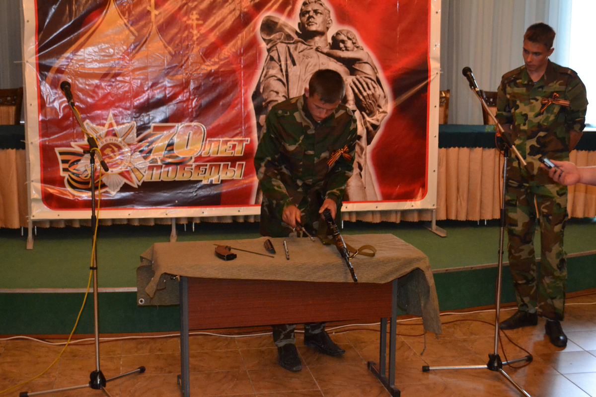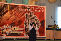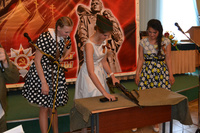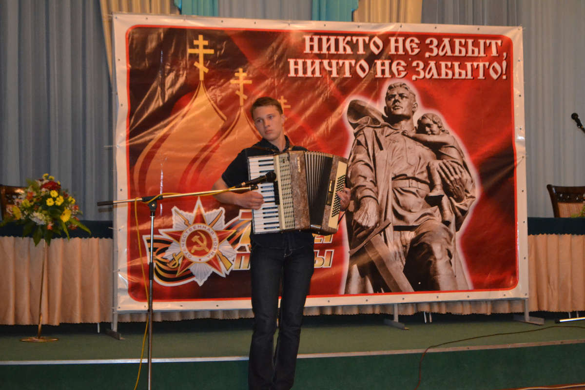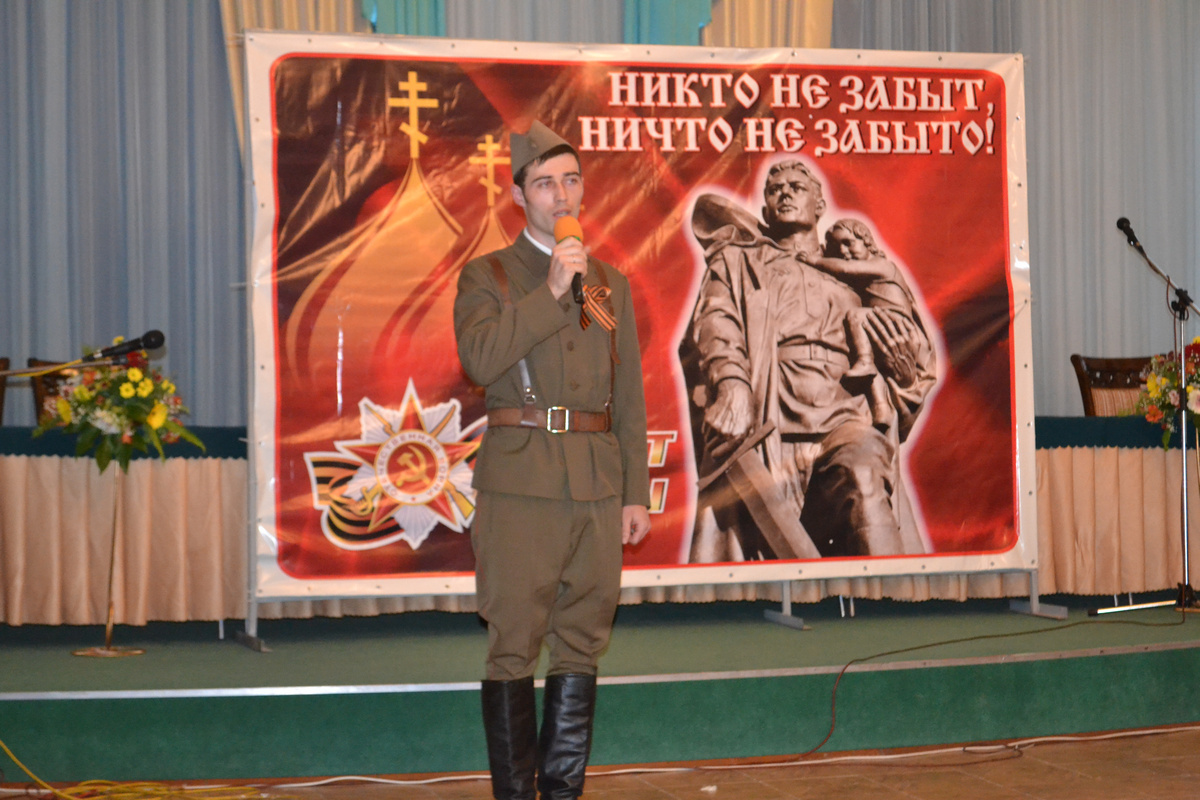 В сценарии были использованы стихотворения: Роберта Рождественского «Баллада о зенитчицах»; стихотворение-молитва «О войне» матушки Елизаветы, православной монахини; стихотворение Марины Белан «Письмо Солдата»; стихотворение Марины Терентьевой «Письмо сыну»; стихотворение Владимира Агатова «В землянке»; стихотворение Терентия Травника «Весной победною согрета», Дмитрия Ахременко –«Молитва о погибших войнах», а также использованы стихотворения, взятые из интернета. Прозвучала музыка: «Школьный вальс»; Ханс Циммер; фонограмма-обращения Левитана 22 июня 1941 года; минута молчания метроном, «Священная война» А.Александрова-В.Лебедев-Кумача; «До свидания, мальчики» - Булата Окуджавы; песня народная военно-патриотическая – «Катюша»; песня «Нам нужна одна победа»; песня «Три танкиста»; «Рио Рита»; военное попурри, песня из к/ф «Летят журавли»; песня композитора Давида Тухманова и поэта В. Харитонова «День Победы». Специально для мероприятия Нусупханом Алишеровым были созданы два видеоролика с кадрами из документальных исторических фильмов об основных этапах войны и об участии в ней русского православного духовенства – священников и монахов – ветеранов войны. Отец Евгений Бондаренко, настоятель храма свщ. Вениамина, г. Чолпон-Ата предоставил оружие для проведения конкурса для разборки и сборки автомата. Апофеозом праздника стали танцы под музыку военных лет, в котором участвовали все – как молодежь, так и фронтовики.