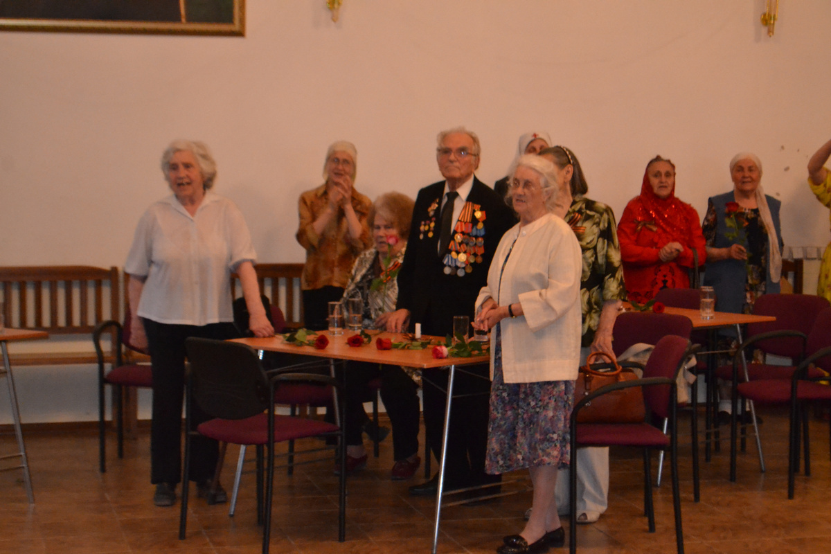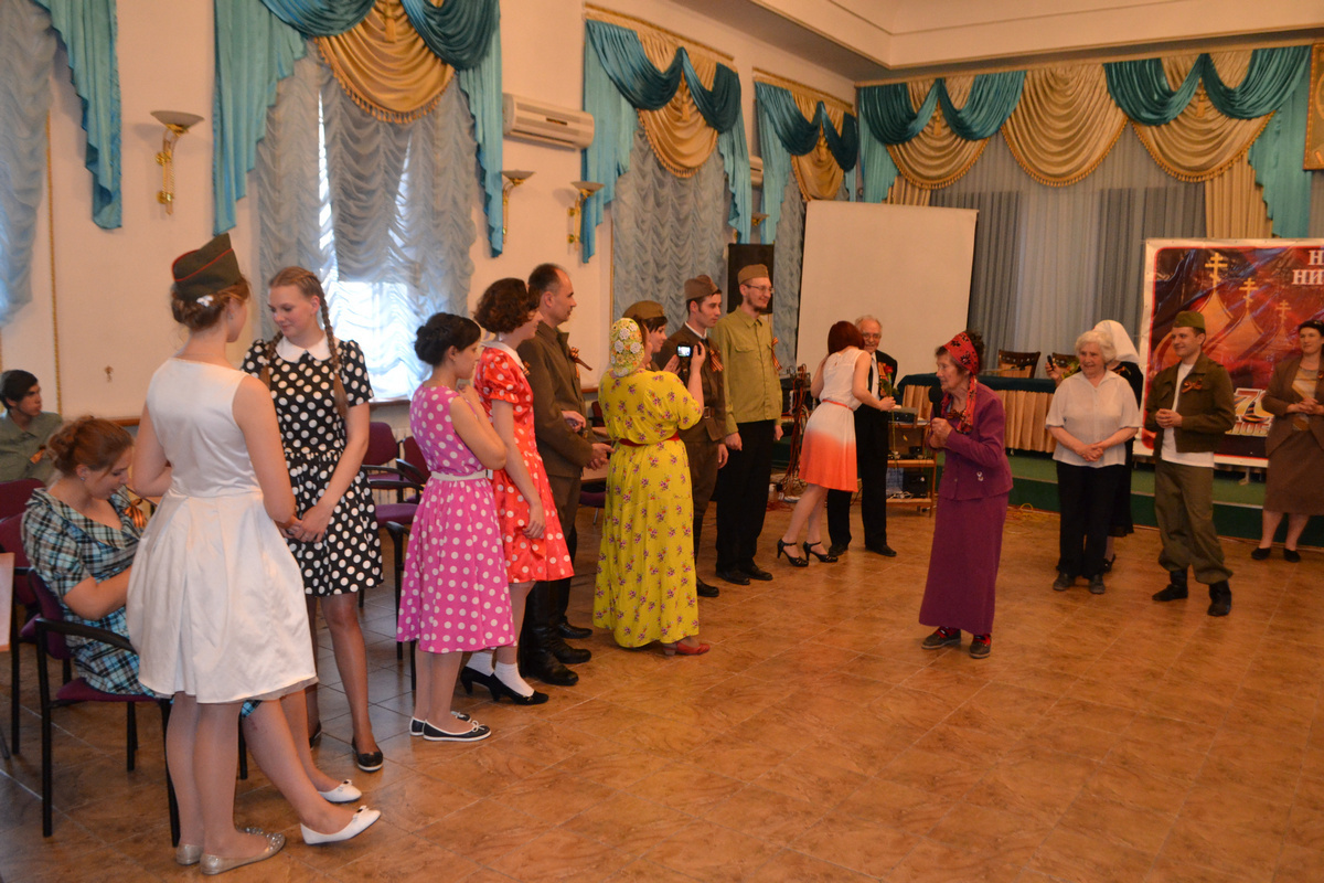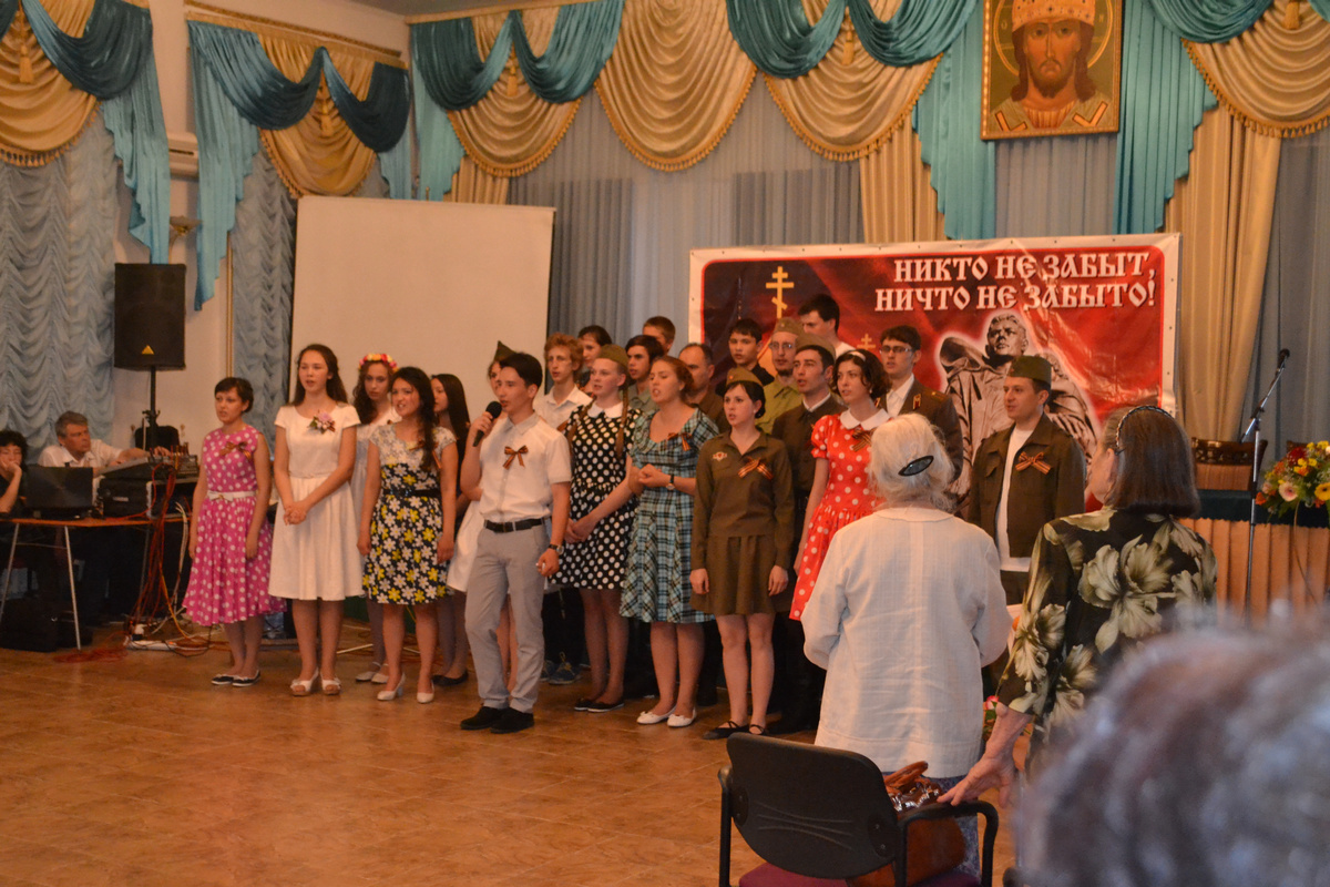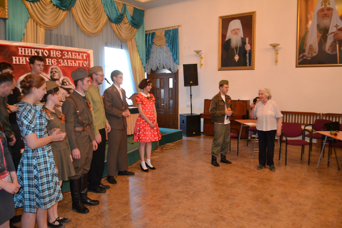 Стены конференц-зала Свято-Воскресенского Собора были наполнены молодёжью и взрослыми людьми, которые пришли поздравить ветеранов Великой Отечественной Войны и разделить со всеми радость Победы.