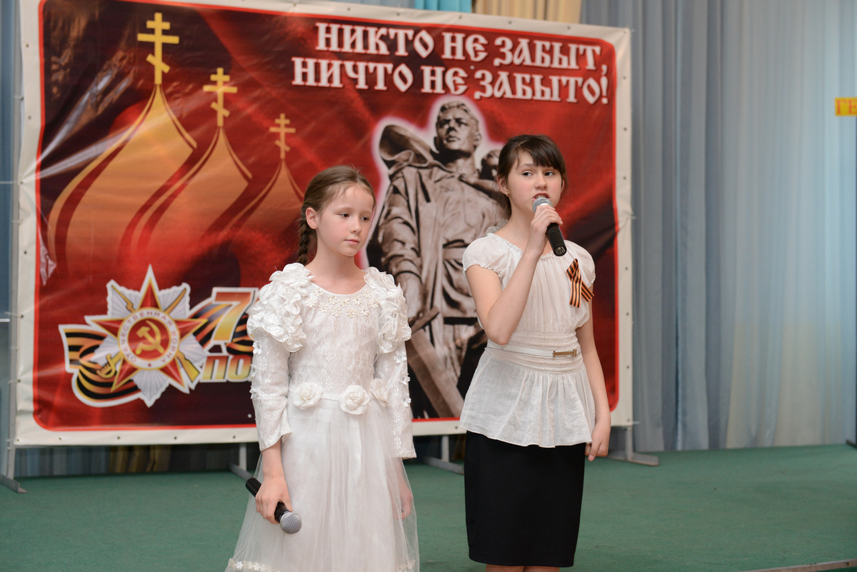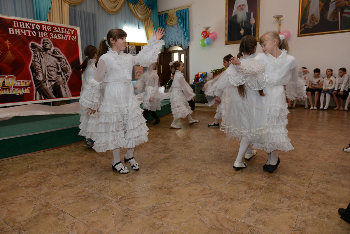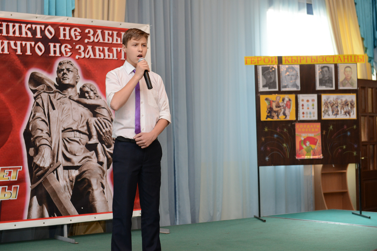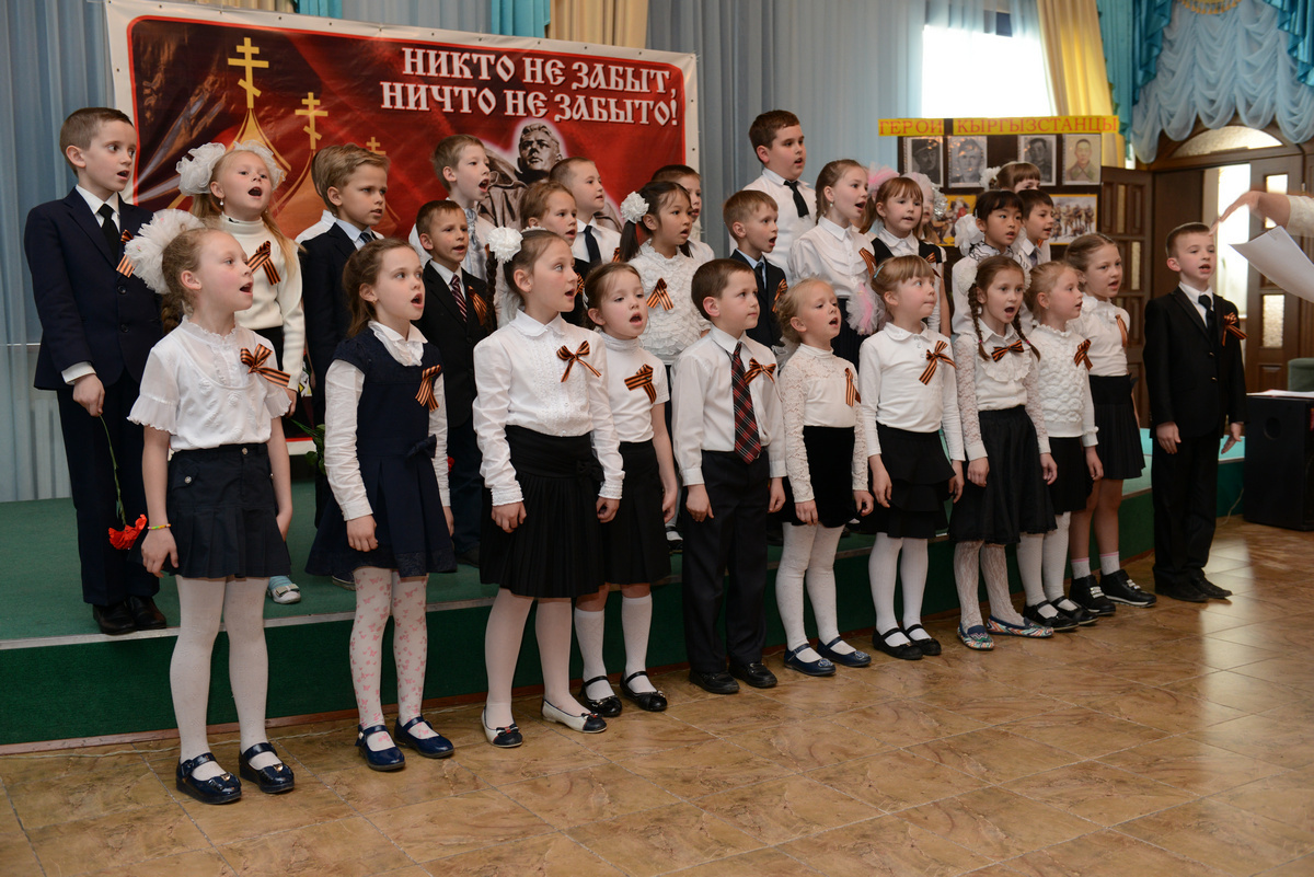 30 апреля в конференц-зале Свято-Воскресенского собора г. Бишкек состоялся большой концерт, посвященный 70-летнему юбилею Великой Победы, на который были приглашены ветераны Великой Отечественной войны. Концерт подготовили преподаватели и ученики общеобразовательной школы Святого князя Владимира. И организаторы, и участники мероприятия отнеслись к подготовке не формально. Идея концерта в знак подарка ветеранам, в знак благодарности тем, кто рисковал жизнью и перенес все тяготы войны на фронте и в тылу, созревала давно. Каждое выступление юных исполнителей, видео материал и минута молчания были направлены на то, чтобы зрители – дети и взрослые прочувствовали всю глубину и трагедию войны, и ту высокую цену, которую заплатил советский народ за победу над фашизмом.