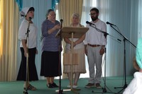 Бишкек. Продолжается I тур. В сорокоградусную жару шесть храмов из трех благочиний присылают своих участников - 10коллективов. Радуемся – не перевелись еще в нашей епархии подвижники! Много детей, взрослых, школьников и студентов, которые не побоялись в период сдачи экзаменов пожертвовать своим временем, хочется всем дать 1место, но нельзя – условия конкурса серьёзные. Нужно всем нам стать на ступеньку выше, многим это уже удается (певчим из с. Ленинское и с. Ново-Покровка), а кому-то ещё придётся потрудиться, об этом говорим на совещании после выступлений. Завершает I тур родившийся во время фестиваля яркий красочный ансамбль народной песни «Славия». Возвращаясь по раскалённой трассе в Кара-Балта  молюсь о дождике.