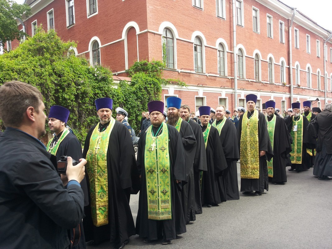 Начало Крестному ходу положил молебен, совершенный в ставропигиальном Иоанновском женском монастыре Санкт-Петербурга.