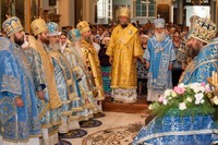 После причастия, вознесенных молитв и провозглашения многолетия владыку Викентия поздравили приглашенные гости-архиереи.