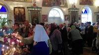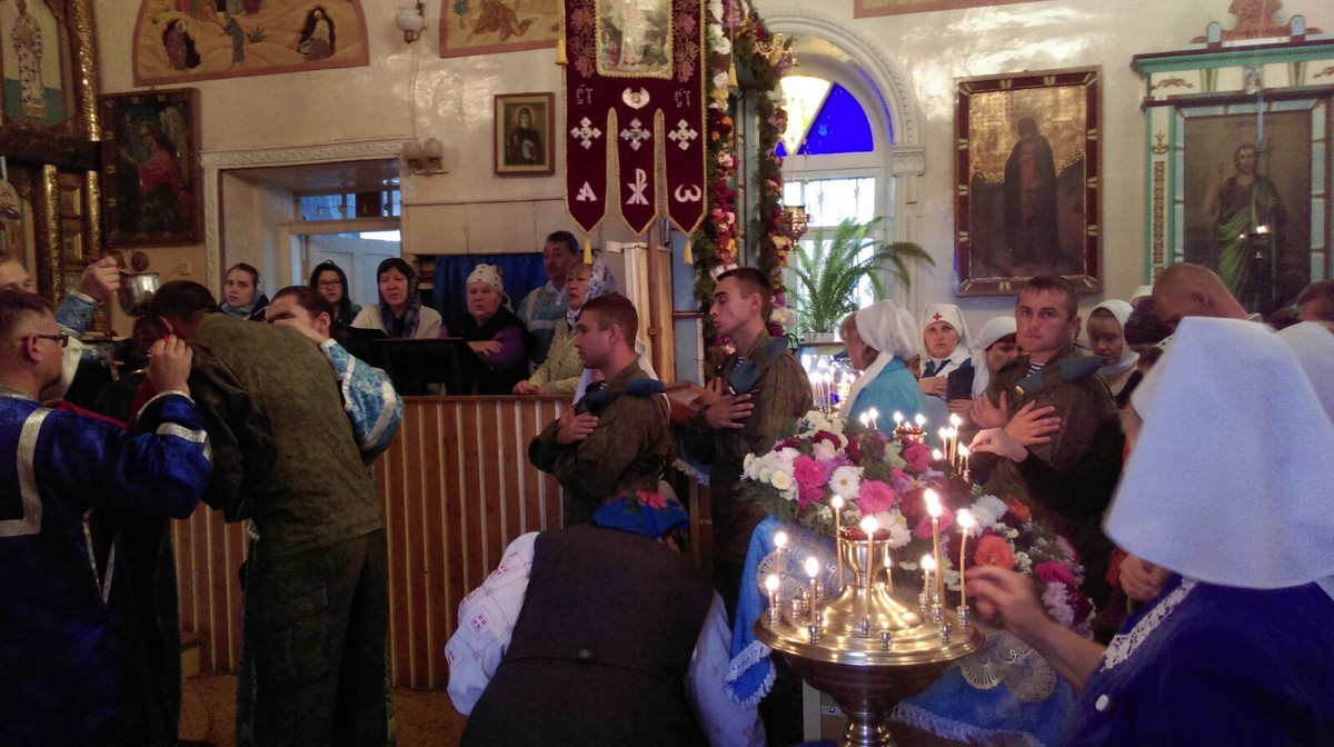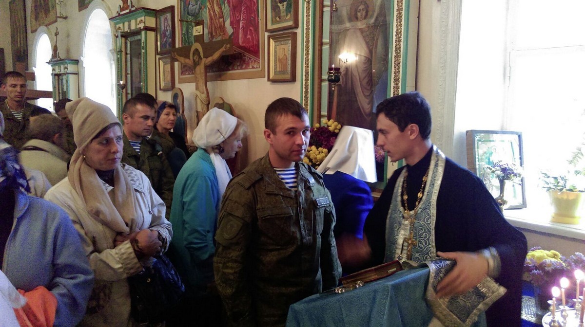По окончании Божественной Литургии настоятель Храма иерей Олег Бибик обратился к собравшимся со словом назидания: «Сердцами своими дорогие воины, братья и сестры мы верим, что Пресвятая Богородица всегда молится о роде христианском и предстательствует о нем пред Своим Божественным Сыном, но своими человеческими глазами убедились в этом блаженный Андрей и Епифаний, когда сошла Она из-под сводов храма в алтарь и долго молилась, стоя на коленях.