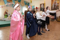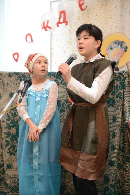 На чтения прибыли детские коллективы Воскресных школ из разных уголков нашей страны. И вновь конференц-зал духовно-просветительского центра Свято-Воскресенского Собора наполнился шумным гомоном радостных нарядных детей и наставлениями их заботливых воспитателей. Команды из далекого с.Тюпа, г.Карабалты, г.Токмака, с.Сосновки, с.Ленинского и др. подготовили яркие, наполненные глубоким смыслом сценические постановки. У жюри была очень сложная задача выбрать из показанных сценок лучшие. В выступлении каждой команды была своя изюминка. Коллектив «Лучик» храма вмч. Дмитрия Солунского из с.Сосновки порадовал зрителей своими душевными песнями и яркими костюмами. Дети из группы воскресной школы Свято-Воскресенского собора г.Бишкек удивили интересной содержательной постановкой с поучительным смыслом, которая была оформлена красивыми праздничными колядками. Очень актуальной была постановка команды «Пересвет», храма благоверных князей Бориса и Глеба с. Военная Антоновка с его ярким главным героем Дедом Морозом, который пытался разобраться в смысле праздников Новый год и Рождество Христово. А маленькая елочка лет пяти из с.Тюп храма иконы «Казанской Божией Матери» команды «Неопалимая купина» в пышной зеленой юбочке, умилила зрителей своим сценическим талантом. Кукольный театр коллектива «Семицветик» с.Манас храма «Иоанна Кронштадтского» перенесла всех зрителей в мир сказочного и чудесного детства.