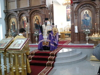 После праздничного обеда и концерта паломники вновь окунулась в молитву, поехали вслед за тремя Архиереями в Асанбай на всенощное бдение. И еще раз получили благословение на добрые дела и спасение душ от митрополита Викентия, епископа Питирима и епископа Даниила.