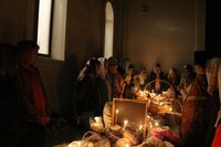 В эту пасхальную ночь, во время Божественной Литургии каждый, кто готовился к Таинству евхаристии имел возможность причаститься святых христовых Таин и по завершению богослужения освятить принесенные в эту пасхальную ночь пасху, куличи, яйца и т.д.