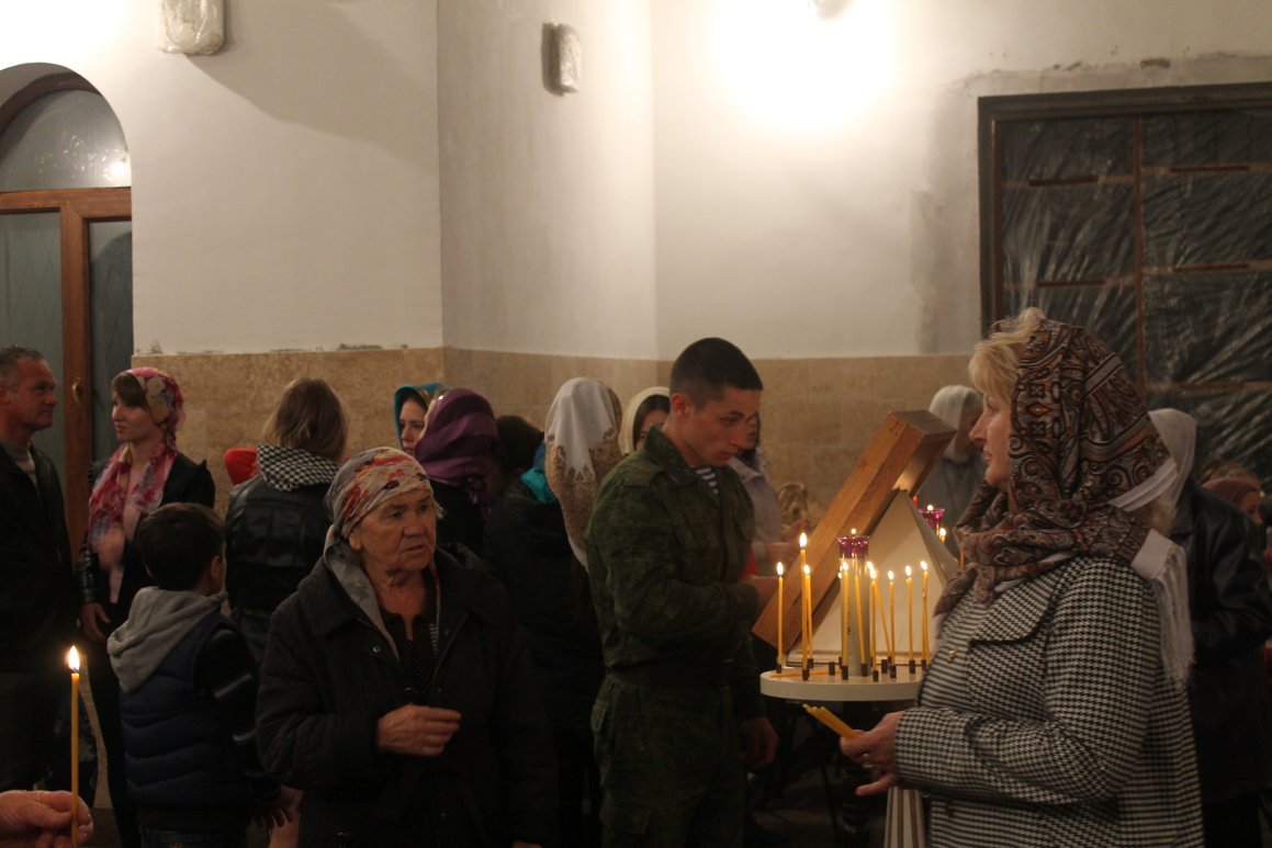Накануне самой Пасхи, военнослужащие и их семьи трудились в Храме, приводя его в чистый и благолепный вид как внутри, так и снаружи.