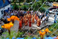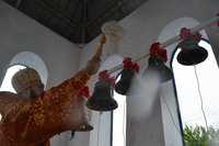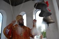 По окончании литургии владыка Даниил в сопровождении духовенства и прихожан возглавил крестный ход. Когда вся процессия подошла к колокольне, Его Преосвященство совершил чин освящения колокольни и колоколов.